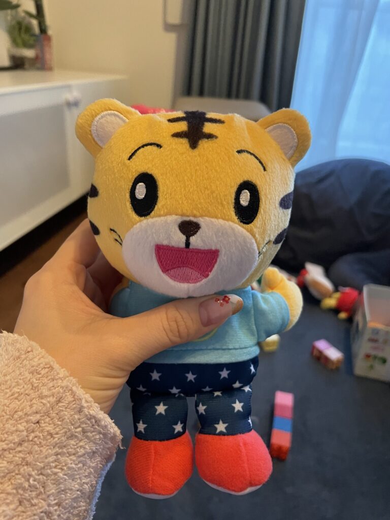 特にハマったのが、しまじろうのしゃべる人形。ボタンを押すと英語で話しかけてくれるので、毎朝「Good morning!」と声をかけるのが日課に。