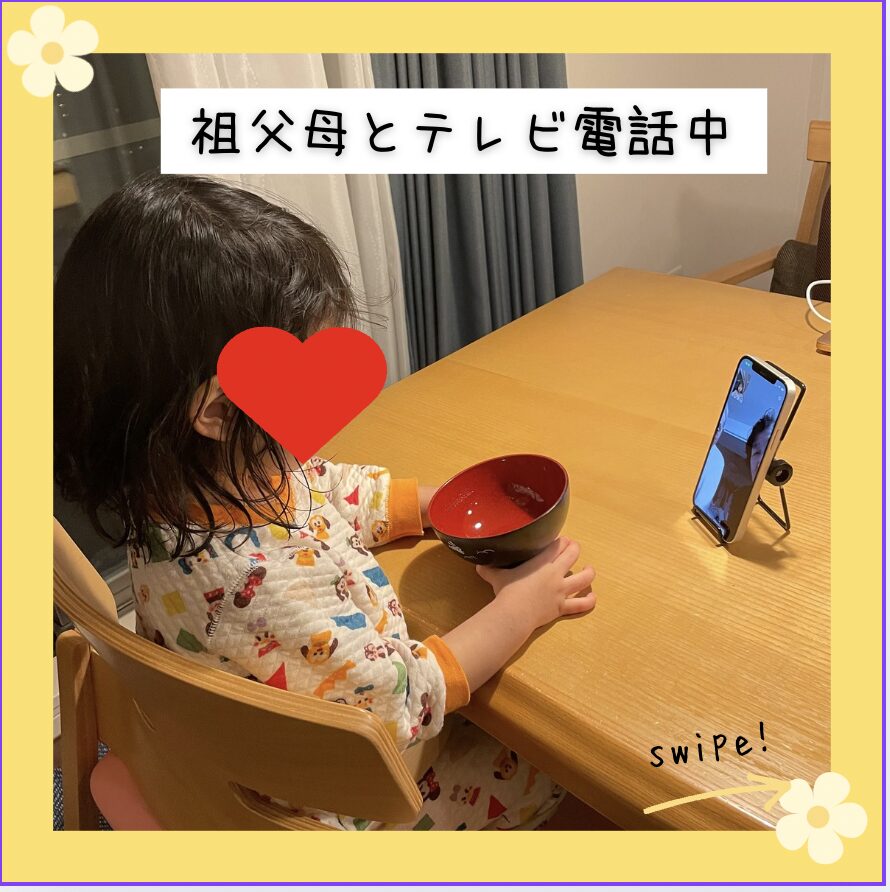 祖父母や友達とも顔を合わせる機会も少ない中、「限られた環境でどう“言葉の刺激”を設計できるか」を考え、僕はLINEのテレビ電話を導入。