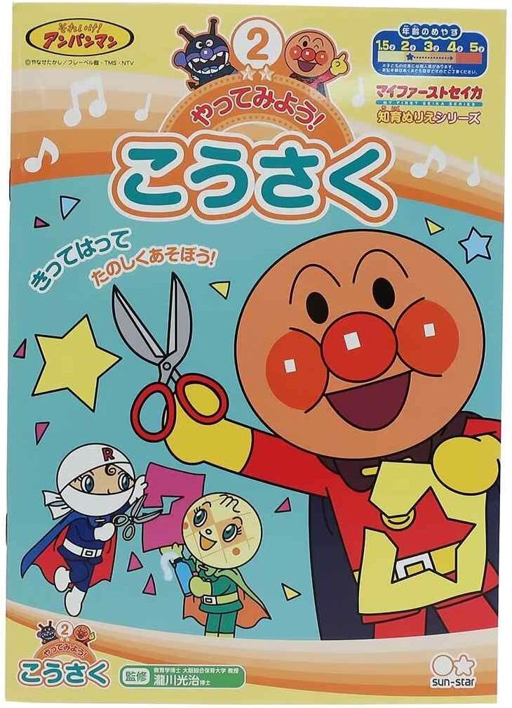 さらに驚いたのが工作ワーク。ハサミやノリを使ってアンパンマンのキャラクターを作る内容で、完成した作品はミシン目で切り離して手に持って遊べる設計になっている。